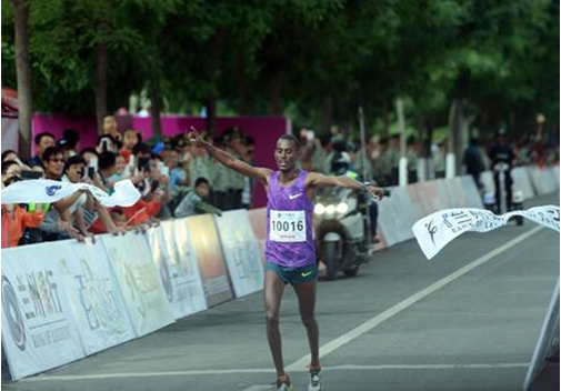 埃塞俄比亞選手阿亞勒·沃爾德·喬治斯率先沖過(guò)終點(diǎn),以2小時(shí)10分10秒的成績(jī)獲得男子全程冠軍。