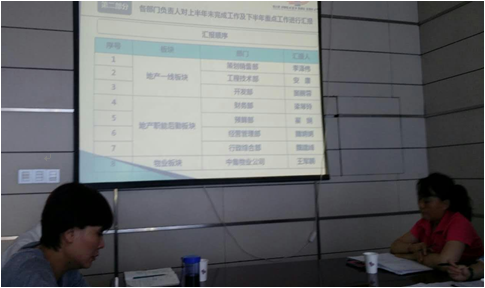 會(huì)上,房地產(chǎn)公司重點(diǎn)對上半年工作完成情況從企業(yè)經(jīng)濟(jì)發(fā)展、項(xiàng)目工程施工建設(shè)、物業(yè)經(jīng)營服務(wù)、內(nèi)部管理等方面進(jìn)行了分析總結(jié),并對下半年重點(diǎn)工作進(jìn)行了匯報(bào),明確了下半年目標(biāo)任務(wù)。
