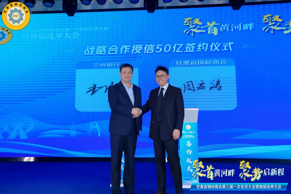 省委統(tǒng)戰(zhàn)部副部長、省工商聯(lián)黨組書記劉全平、省工商聯(lián)副主席、省總商會(huì)黨委書記朵雪青,省民政廳、省工商聯(lián)相關(guān)負(fù)責(zé)人,蘭州銀行黨委書記、董事長許建平、浙商銀行蘭州分行黨委書記、行長張 禹以及蘭州銀行、浙商銀行、中國銀行、甘肅銀行、甘肅省農(nóng)村信用社聯(lián)合社等金融機(jī)構(gòu)相關(guān)負(fù)責(zé)人,酒鋼、寧鋼、包鋼、八鋼等鋼廠業(yè)務(wù)負(fù)責(zé)人,上海鋼聯(lián)、蘭格集團(tuán)等鋼材貿(mào)易平臺(tái)機(jī)構(gòu)負(fù)責(zé)人,甘肅省青年企業(yè)家商會(huì)、甘肅省城市建設(shè)商會(huì)、甘肅省投資商會(huì)、甘肅省陜西商會(huì)、甘肅省湖南商會(huì)、長江商學(xué)院甘青寧校友會(huì)等商會(huì)會(huì)長、會(huì)員代表和甘肅省鋼材商會(huì)會(huì)員200余人參加大會(huì)。